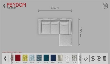 3、您的定制沙发占用的空间尺寸将一直显现在2D视图中,以便您晓得它能否合适您指定的空间。