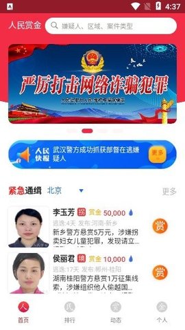 人民赏金app官方版是一款最近大受欢迎的赏金应用,用户可以根据上面的奖励信息了解不同的嫌疑人,也可以根据照片让自己意识到一定的防范措施,并同步更新最新的慈善基金活动情况。