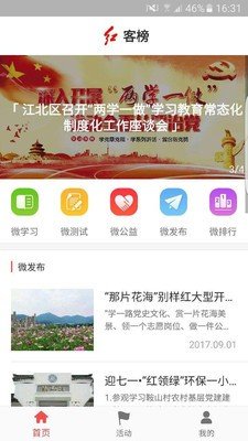 红客榜app是江北区一款全新的基层党建app,功能强大,可完善思想教育、大型教育学习论坛、讲座、有思想的插件等,开发了一款集党建知识微学习、问答微测试等功能于一体的手机应用。