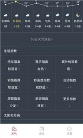 1、综合天气指数:气温、天气状况、风向、湿度、空气质量、服装指数、寒冷指数、15天预报。