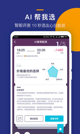 1.一键机票搜索:支持搜索全球数百家航空公司的国内和国际机票,快速匹配亚洲、欧洲和美洲目的地的航班组合