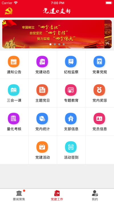 3、为党员提供在线学习、三会一课、专题教育等功用。