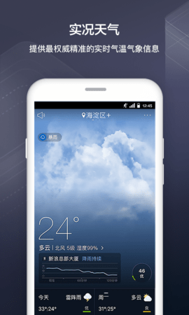 3、短期预告:分分钟级天气预告,多云天气预告,雨雪天气预告,一站式效劳十分便当。