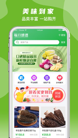 枞川味道app是一款专注于农产品的手机电商软件,枞川味道app集合了销售、团购等多种类型的模式,其中各种农产品就是一切,而且所有商品都是直接从产地来的,可以为用户提供非常新鲜健康的购物理念哦,感兴趣的小伙伴快点来下载吧,千万不要错过了!