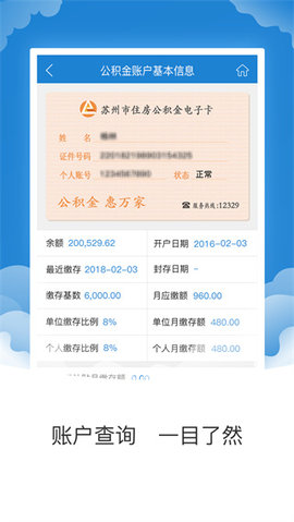 提供公积金账户根本信息、明细、公积金贷款账户信息、还款明细、还款方案及提款进度等查询。