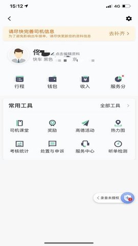 5、进入个人页面,可以了解详细的行程、钱包、收入、服务等信息