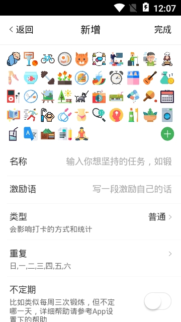 2、支持固定天数的每日或每周时钟。你能够自在选择时间。