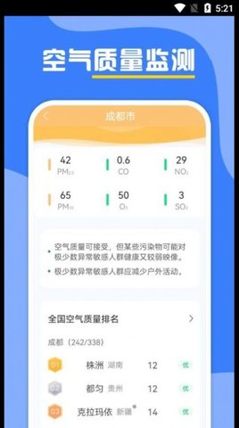 4、提供天气污染指数:实时数据和全国空气质量,精度非常高