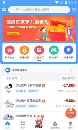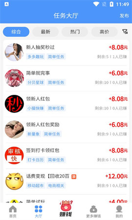 3、首页会为用户推荐当前流行的奖励任务,带你发现更多机会。