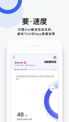 2.仅需1ml唾液,随时随地,3分钟完成采样,72小时app查看结果。