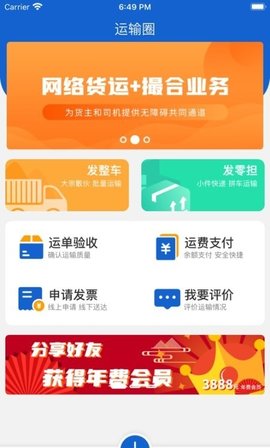 1、运输圈货主帮助成千上万的托运人快速找到合适的装货订单,顺利开展业务。