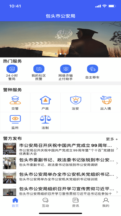 包头公安是智能的市民办事软件。平台打开定位了解当前出行的交通情况,市区路况快照、路况地图、突发事件及全省高速路况。提供办事服务、咨询建议服务、便民服务、证照电子凭证等信息。接警中心通过电子地图准确掌握报警人的GPS位置,任何交通问题在线上解决,能了解报警人的基本情况,让警民合作变得更加的简单,其特色更全。