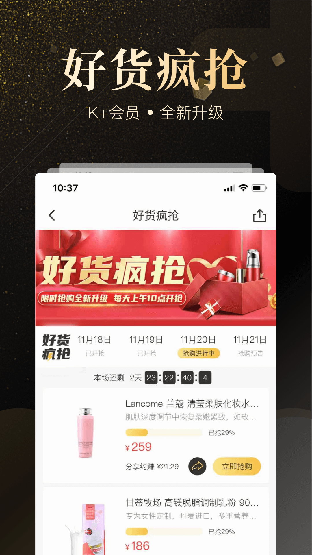 软件内每天都为用户准备了超多签到好礼,KK馆APP下载安装后,参与软件签到,就可将海量精美大奖带回家,解锁超多不一样的购物新体验。