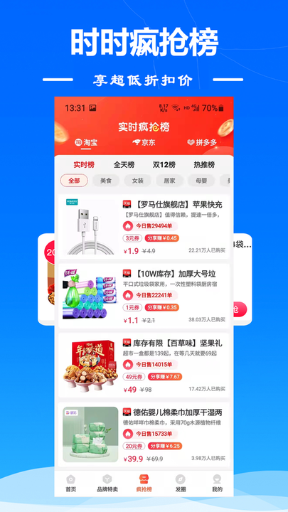1、轻松发现许多低价优质商品,精选百万淘宝天猫优质商品。