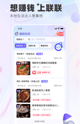1、联联探客是一个供数万名当地生活专业人士创作内容、探索店铺、种草分享和赚取佣金的平台。