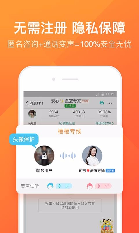 2、拥有贴心的匿名保护功能,包括语音变声、头像保护、昵称咨询等,全面保护用户的隐私。