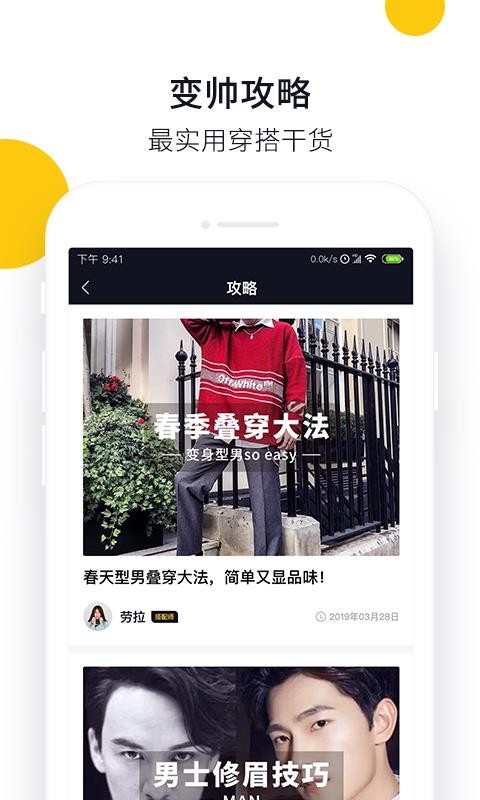 2、穿搭攻略,各种各样的穿搭攻略提供给用户,可迅速浏览。