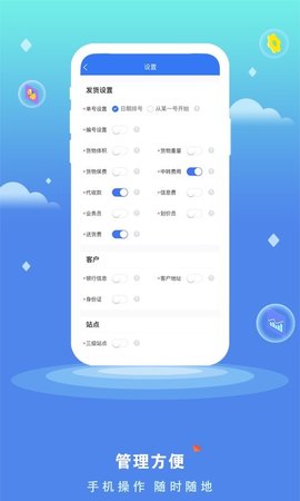 1、定制送货设置,如单证号设置、货物数量、保费、托收、转账费用等,可自行设置;