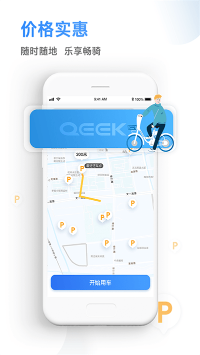 qeek骑电单车可以提供丰富的租车方案。在线手机扫码即可开锁,提供不同的租车信息。扫描二维码即可启动了。用户预约单车规划寻车路线。惠的租车价格、庞大的用户群体,可以自由选择这里的服务。服务范围可以扩展至全国任意城市,并致力于打造绿色环保出行首选平台。
