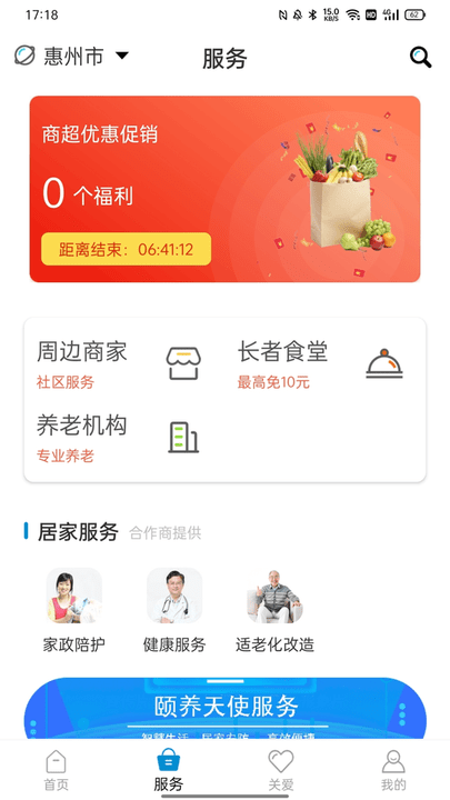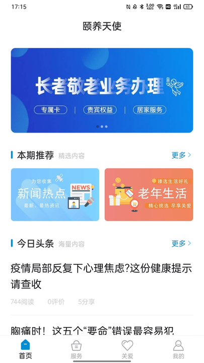 1、为大家提供15分钟极速居家养老生活服务,包括日常办公及养老政策。