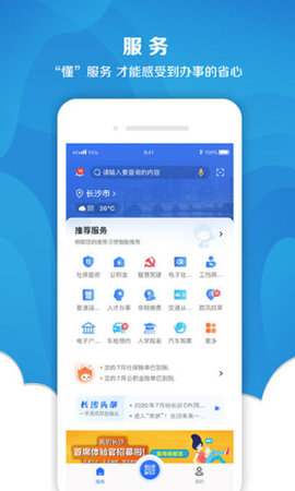 我的长沙app是长沙市人民政府面向市民打造的一站式“互联网+”城市综合效劳平台。秉承“以民为本”理念,整合市级各部门挪动效劳终端,整合政务、公共、社会效劳,整合媒体信息,打造挪动端城市效劳统一门户,完成一个账号在线查看、咨询、办理等数百项效劳效劳。让市民深居简出就能享用便利、高效、统一、标准、优质、高效的政务效劳,做到效劳惠民、依法办事、信息公开透明。