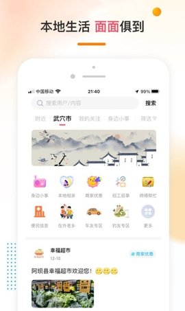 乡广场app下载是一款非常适用的本地生活效劳软件,同样有城市的各种相关信息,在线一键了解更多文化内容和你所在城市的实时定位,非常全面,更新快,俭省工作效率,让生活更便利!