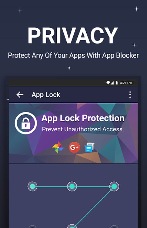 4、应用锁:通过我们的易于使用的应用锁,防止窥探者进入私人应用。选择你想要锁定的应用程序并输入密码。就这么简单!
