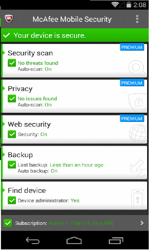结合McAfee VirusScan Mobile、McAfee WaveSecure 和McAfee SiteAdvisor for Android 的强大保护。本解决方案可在您行动装置遗失或遭窃时加以保护、备份与还原您的个人资料、抵御行动装置病毒和间谍软件,并让您安全地浏览行动Web。