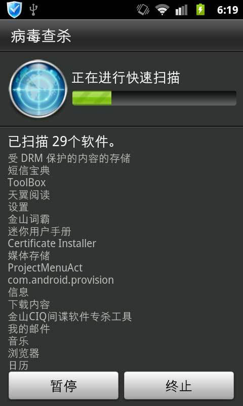 2.病毒查杀 。极速扫描,病毒木马无处逃,云鉴定可疑文件,保护手机防扣费。