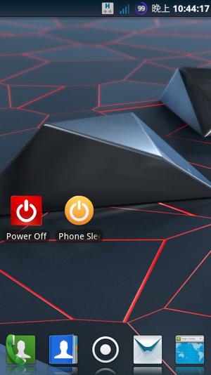 3.Phone Sleep 安装以后会产生两个图标,一名 phone sleep ,一名 power off,点击前者可以关屏,后者可以呼出关机菜单。