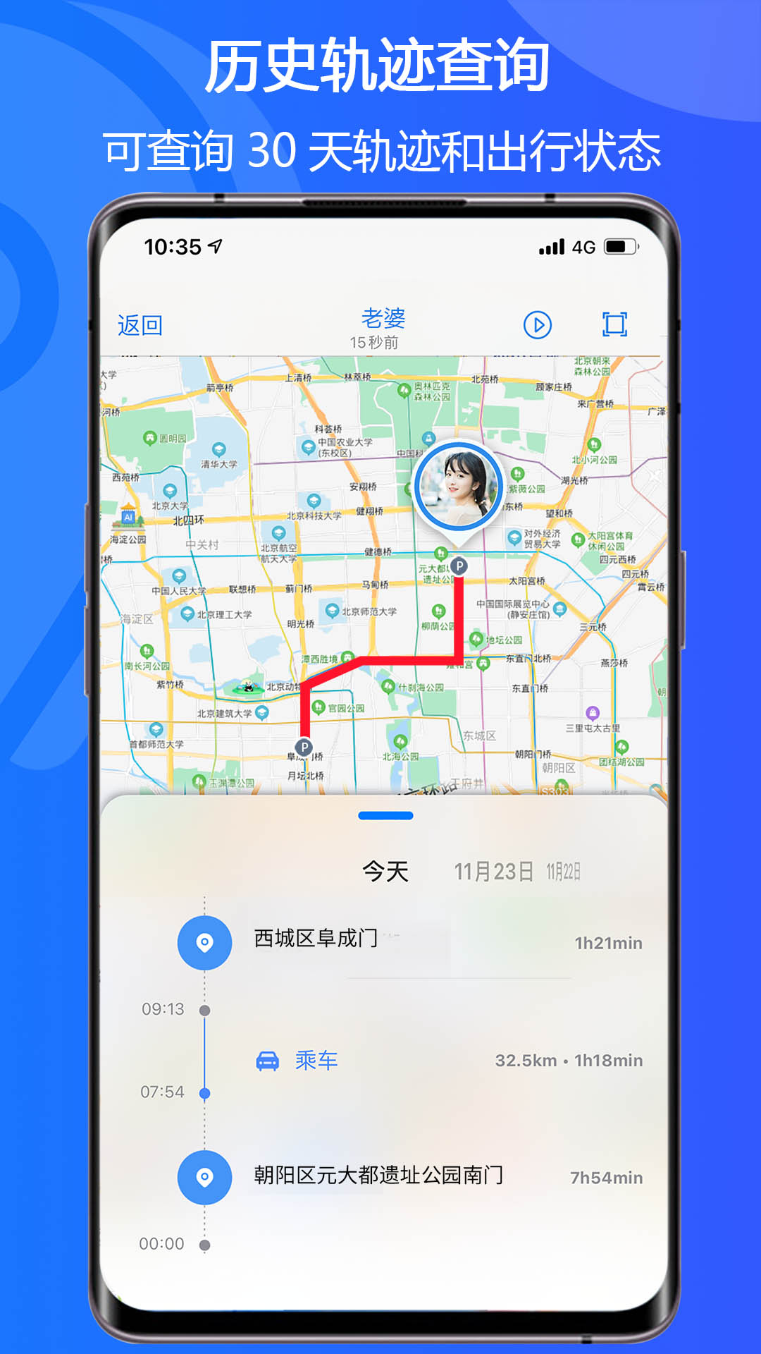 2、历史足迹,用户可以随时查看绑定成员的历史30天的足迹;