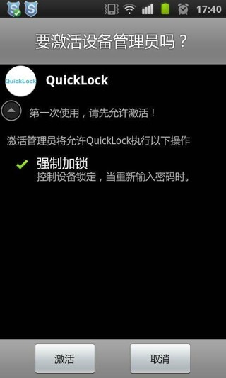 quicklock是一个快捷的安卓手机锁屏工具,非常不错的锁屏工具!点击程序,立即锁屏!可以用来代替电源键锁屏的工具,减少对硬键的损耗!
