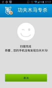 360安全卫士出品的一款专杀工具,主要用于安卓手机上的KungFu3木马专杀,一键查杀“功夫木马”(KungFu3)变种。