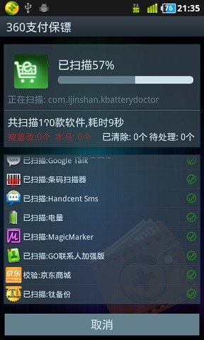 360支付保镖专门针对移动支付所设立的全方位安全保护机制。第一重防护,是当用户下载网银、网购客户端时,360支付保镖将自动检测客户端是否遭到恶意篡改,抑制威胁源头;第二重防护,指360支付保镖针对盗号木马和钓鱼信息,提供了联网云查杀功能,保障帐号、帐户的安全;而第三重防护,则是在手机支付行为发生时,360支付保镖会立即自动运行,阻止未知程序运行,实时检测支付环境的安全与否。