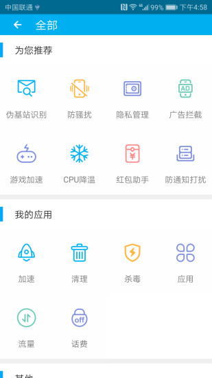 4、流量管家:带给您省流量小帮手,上网流量实时监控,自动校准流量,自定义设置流量超额自动提醒,避免流量超额导致金钱损失;