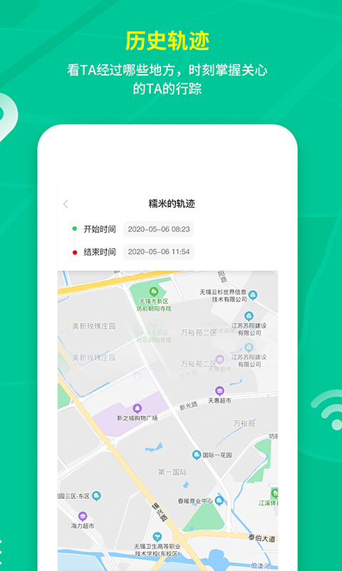 2、历史轨迹:看到自己关心的TA都曾经经过哪些地方,时刻关心对方行踪;