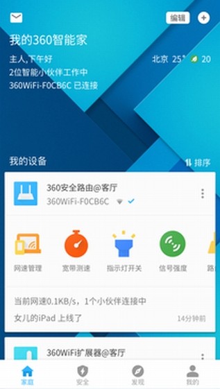 360智能管家app原名360安全卫士,是一款路由器管理应用,帮助用户一键管理并掌控多种智能设备,可以添加更多智能设备,绑定路由器,保护网络安全畅通。