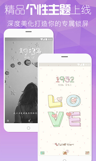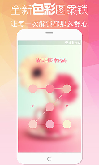 支持系统指纹、多彩图案、多位数字、个性文字、心形密码等多种解锁方式,请看我漂亮的安全守护!