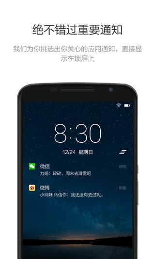 你曾经花钱换手机提升硬件只为让手机快一点、再快一点,如今仅需一个锁屏,你的手机生活即可变得简单、智能、高效。还在犹豫什么,动起手来下载吧。