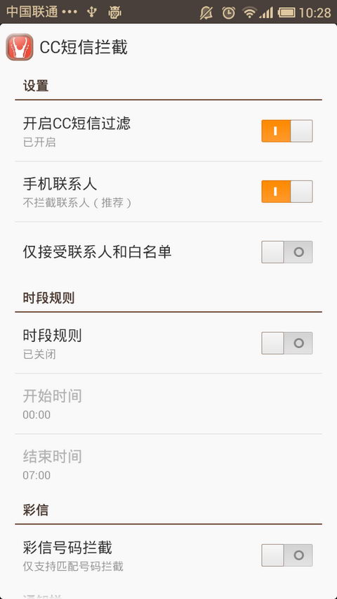 ccSMSBlocker是一款android短信拦截工具,多种自定义拦截规则,对设备权限要求很少,CC短信拦截 可设置是/否拦截手机联系人,或仅接受联系人和白名单短信。还可以设置时间段开启拦截。