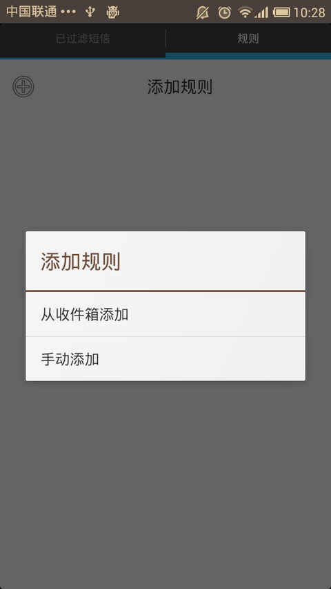 4、[黑]过滤关键词:系统已内置部分常见垃圾短信关键词。[例]发票(程序会自动生成正则式过滤短信,中间夹杂随机字符都可过滤)