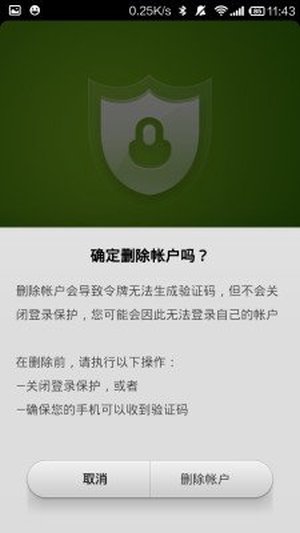 2.关闭两步登录或其他令牌激活,此令牌失效自动提示并删除帐号