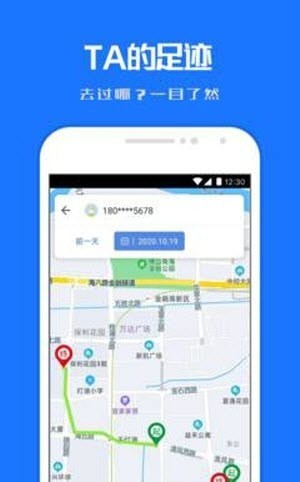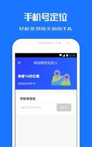 1、用户关心的、在意的人,都可通过手机号来添加到软件内实时查询对方位置;