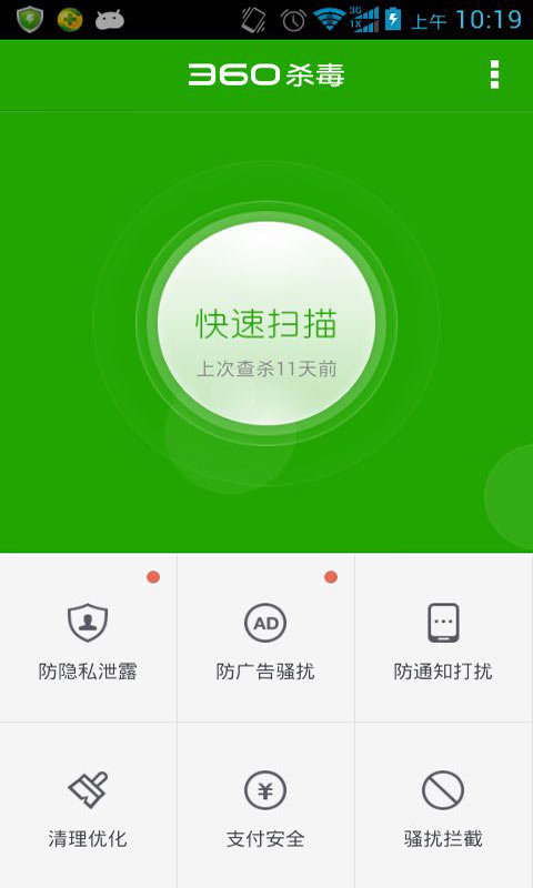 作为中国最大的互联网安全厂商,360手机杀毒的推出尽可能满足更多用户对安全防护的要求,为用户营造安全、放心的手机环境。