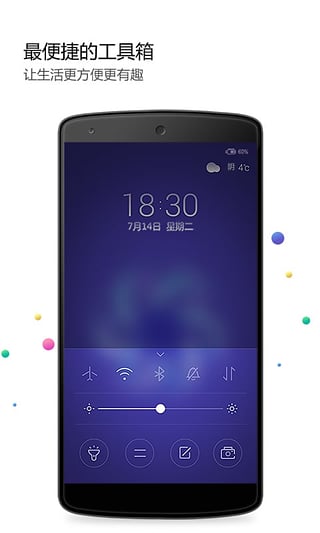 无需解锁即可使用手电筒、计算器、便签、照相机、亮度调节、Wifi、数据连接、静音等便捷功能。手机便捷性、实用性立马提升。