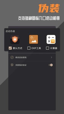 1、用户可以更换桌面图标和应用名称,以计算器或是EXIF工具的方式进入相册;