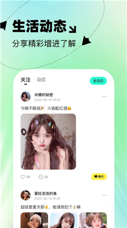 优质的一款互动社交软件,软件内有许多年轻的小伙伴们在线进行交友聊天,平台内多样丰富的交友方式随时都能让用户朋友们来进行选择使用,给大家带来了精彩愉悦的手机社交互动乐趣。