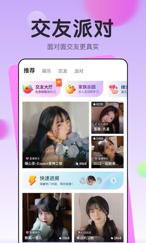 软件内用户朋友们能快速匹配新朋友来进行互动社交,各种有趣的社交内容也都是能随意进行使用体验的,在这里喜欢交友的小伙伴们一定不要错过了,快下载来亲自使用试试看吧,精彩的内容随意体验。