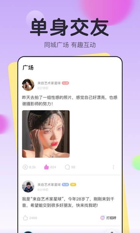 适合单身用户使用的交友软件是一款特别好用的线上交友软件,软件里有很多优质的单身用户,这些小哥哥小姐姐的颜值都是很高的,你可以通过软件与他们进行互动,软件支持多种互动的方式。