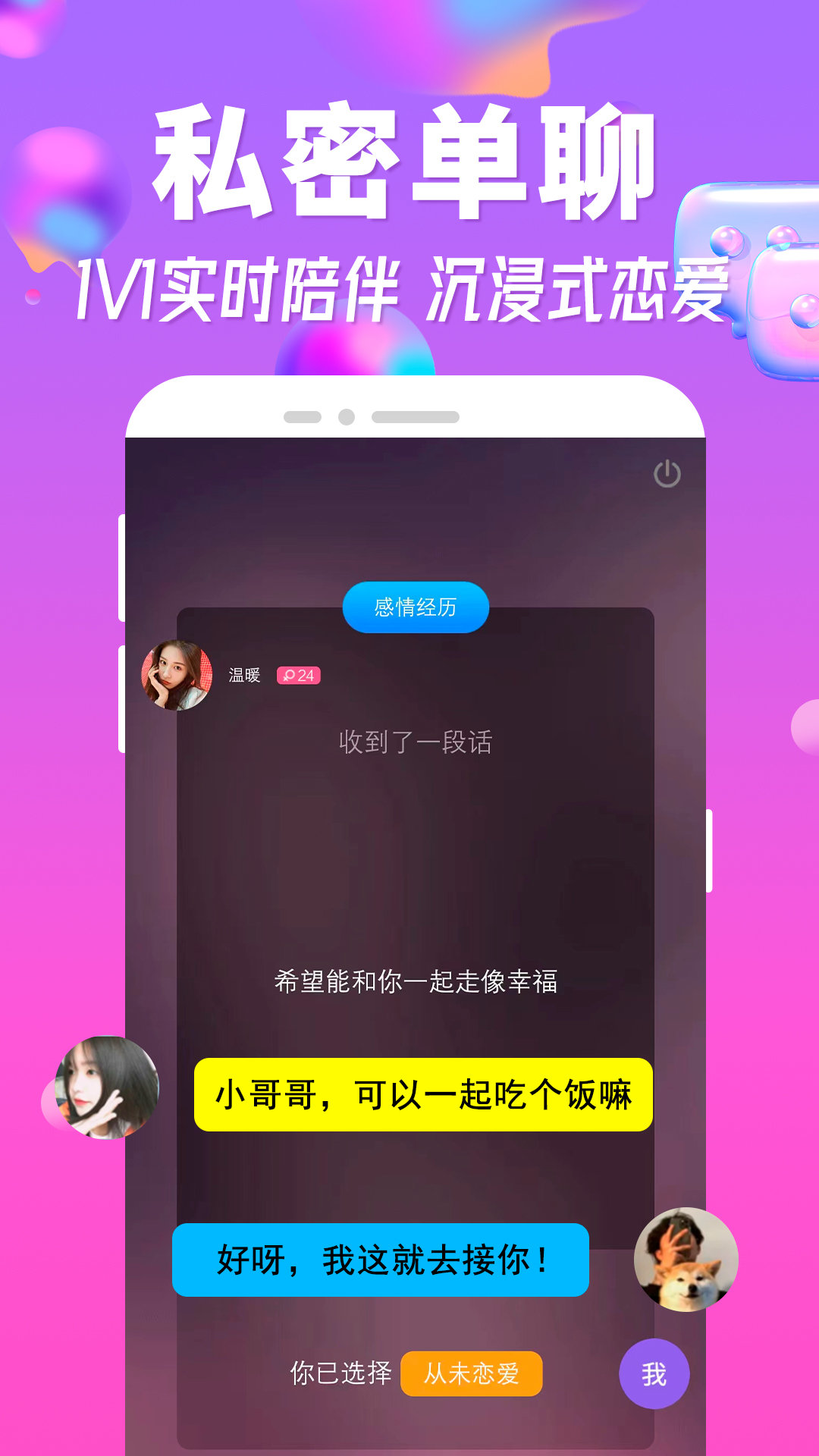 语音聊天,特殊的社交体验,不同的爱情收获,与你相遇的专属剧情。
